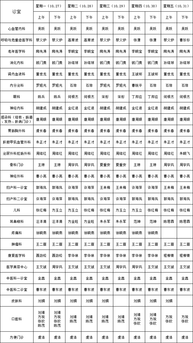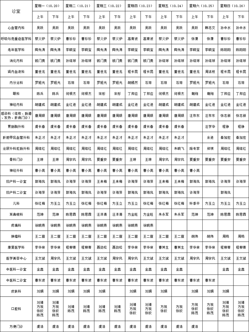 门诊排班表电子版附件(可以点击查看):https://pro61ce99-pic17.websiteonline.cn/upload/iuc4.xlsx